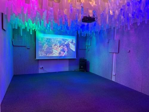 The retreat is a secluded and meditative workshop space, softened with draped fabric and coloured lighting that can be set to match your vibe. Enjoy a calming venue for boutique workshops, gatherings, or meetings. The space includes projection and sound to enhance your experience.